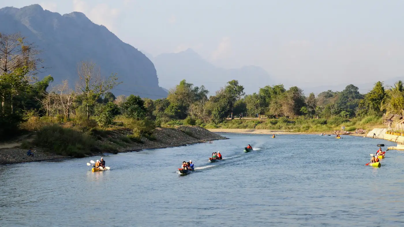 Vang Vieng မြို့ရဲ့ Highlight တွေက မြို့ဝန်းကျင်က အံ့မခန်းသဘာဝအလှတွေပါ… စိမ်းစိမ်းစိုစို ထိုးထိုးထောင်ထောင်နဲ့ မတ်စောက်လှတဲ့ ကျောက်တောင်နဲ့တောင်တန်းအမြင့်ကြီးတွေ၊ ထုံးကျောက်လှိုဏ်ဂူကြီးတွေနဲ့ Nam Xong River တို့က ဗန်ဗီယန်ရဲ့ တန်ဖိုးဖြတ်မရတဲ့ရတနာတွေပါဘဲ… အဲ့ဒါတွေအပြင် အဲ့ဒီနေရာတွေမှာ Outdoor Activity အလန်းစားတွေကို တခုပြီးတခုဆက်တိုက် စိတ်ကြိုက်လုပ်ပြီး ပျော်ရွှင်ရတာတွေကြောင့် ဒီမြို့က Outdoor Activity Fan တွေရဲ့ Top Choice တွေထဲက တခုဖြစ်ပါတယ်…