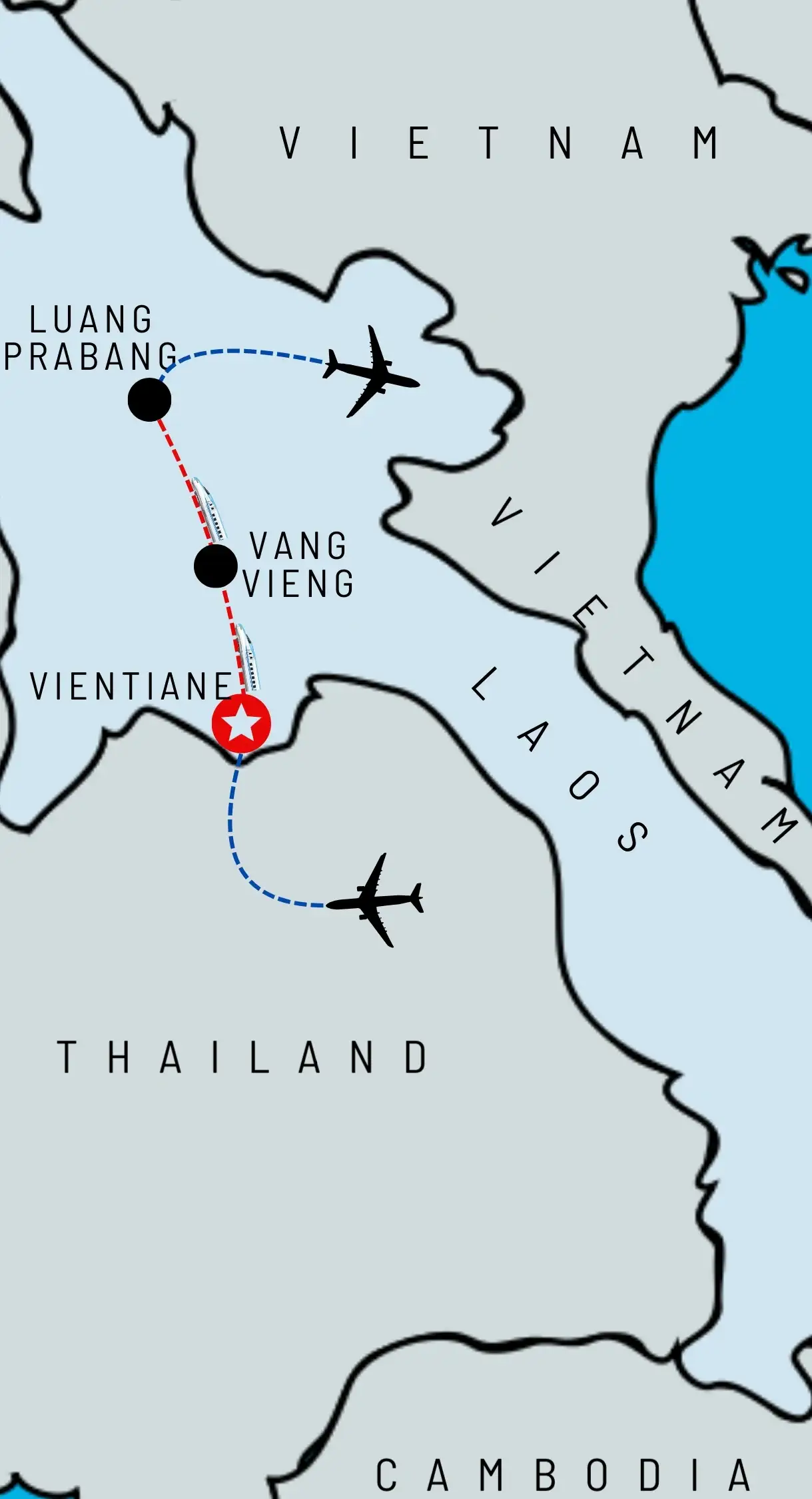 ဒီခရီးစဥ်မှာ လာအိုနိုင်ငံရဲ့ Top Highlight တွေကို အဓိကထားပြီး လည်ပတ်မှာပါ… Tour Length က သက်တောင့်သက်သာဖြစ်တဲ့ ၅ ညအိပ် – ၆ ရက်ပါ… လာအိုနိုင်ငံအတွင်းမှာ မြို့တော်ဖြစ်တဲ့ ဗီယန်ကျင်းမြို့ (Vientiane) ကိုရောက်ရှိမှုနဲ့အတူ ခရီးစဥ်ကိုစတင်မှာဖြစ်ပြီး သမိုင်းဝင်တောင်ပေါ်မြို့ဖြစ်တဲ့ လွမ်ပရာဘမ် (Luang Prabang) ကနေထွက်ခွာတာနဲ့အတူခရီးစဥ်ကို အဆုံးသတ်မှာပါ..
